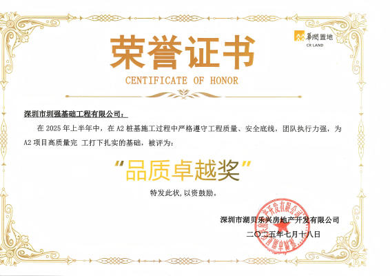 深圳市圳強基礎工程有限公司是一家經廣東省住房和城鄉建設廳核準的具有地基基礎工程專業承包壹級;建筑裝修裝飾工程專業承包壹級;深圳市住房和建設局核準的?建筑裝飾工程設計乙級,市政公用工程施工總承包叁..更多